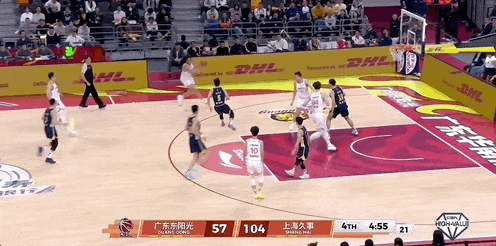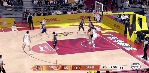 洛夫顿追身三分,分差达到50分。后面发生的事情,简单来说就是,上海队队员轮流进三分球......进完你的,进你的,进完你的,进你的......