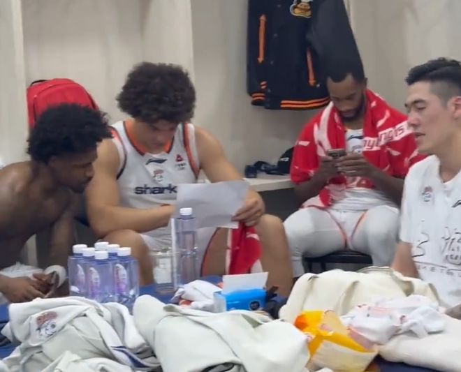 CBA常规赛,上海113-73战胜广东。赛后上海的更衣室已经公布了,当然在更衣室的时候大家都在讨论,气氛非常好。毕竟可以大胜广东,而且赢了这么多分,全队的发挥都非常好,这确实意外。