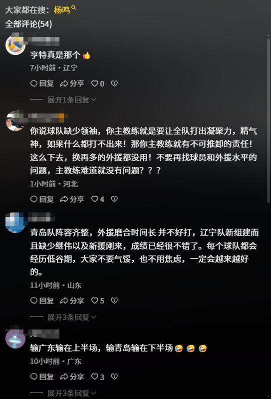 辽宁输青岛揪出混子,辽宁2首发0分,杨鸣甩锅遭怼,换帅呼声高