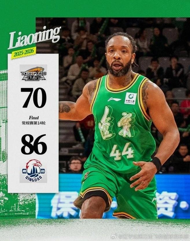 1月13日,辽宁男篮在主场以70比86不敌青岛队。