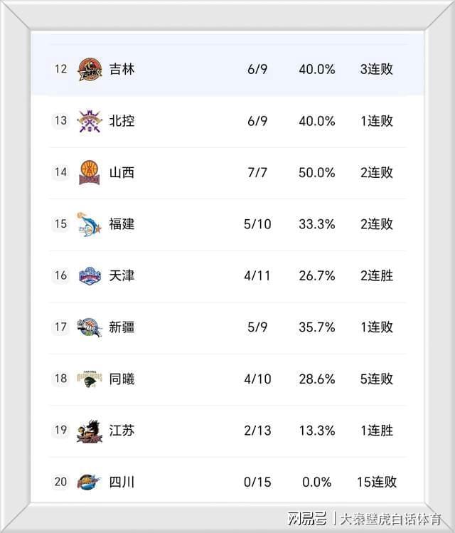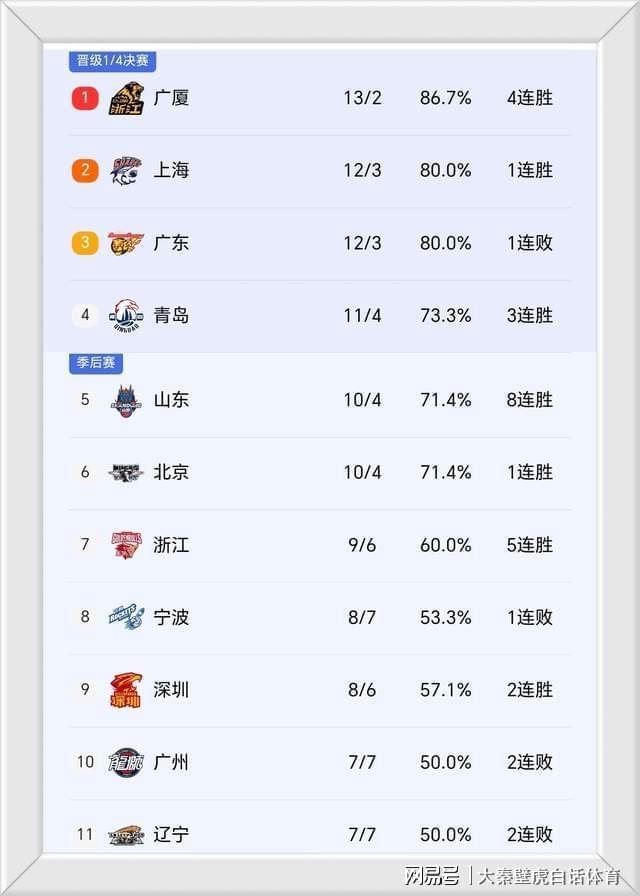 ③、拿到现存联盟迄最长8连胜的山东队力压北京男篮,高居第5位;