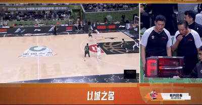 第一节广东队上来就被上海的一套内外连线+跑轰反击直接打懵,第一节进行到还剩3分47秒,广东队已经落后上海20分,杜锋再次准备换人,焦泊乔来到场边候场。