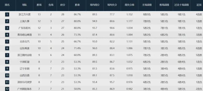 本赛季至今,折兵损将的辽宁队仅取得8胜7负排名联盟第九,前四位置分别是卫冕冠军广厦队13-2、上海队12-3、广东队12-3和青岛队11-4。
