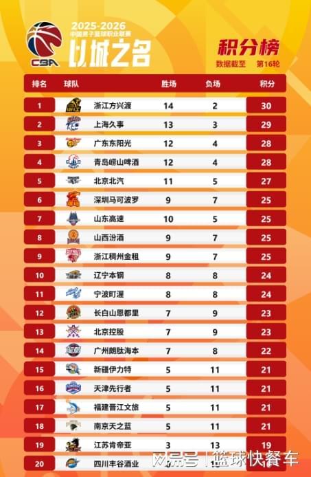 附:CBA积分榜最新排名