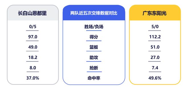 1月21日,CBA常规赛第18轮,广东东阳光将在客场与长白山恩都里男篮交手。上赛季2次交锋,华南虎保持全胜。本赛季,吉林队引进了威尔逊、盖利、摩尔几名实用型外援及栾利程、曾繁日