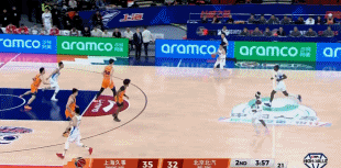 川队半场12分4板2助2断,杰曼11分3板4助,全队除了范子铭外人人都有得分,北京凭借节末一波12-3,单节轰下33分,半场北京46-40反超上海,相当不可思议,许利民自己也看乐了。