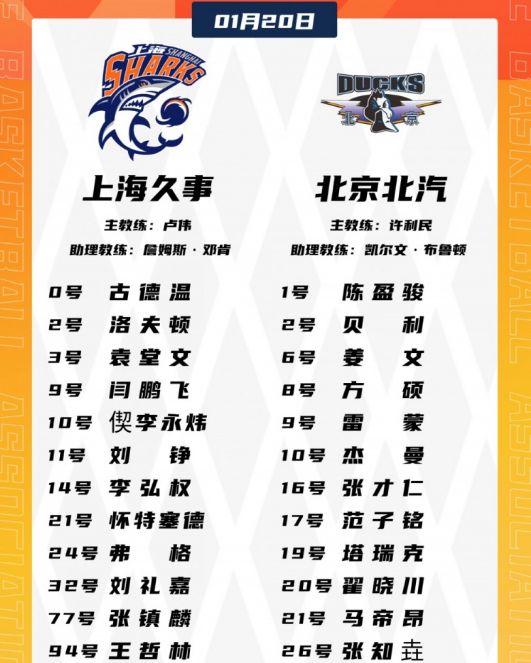 北京时间1月20日,2025-26赛季CBA常规赛上海主场对阵北京,北京3位本土核心周琦、赵睿与曾凡博均因伤缺席。上海在首节领先9分情况下,第二节被北京打出32-18攻势反超5分,但上海下