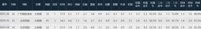 本赛季至今,陈国豪出战16场比赛,场均上阵17.9分钟,拿下6.1分3.8板,投篮命中率43.5%,场均得分以及命中率均是生涯新低,离开北控队之后并没有打得更好。