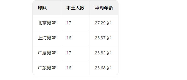 特此声明:数据分析依据为官方发布内容。为更客观呈现各队年龄分布情况,外援年龄不计入统计范围。
