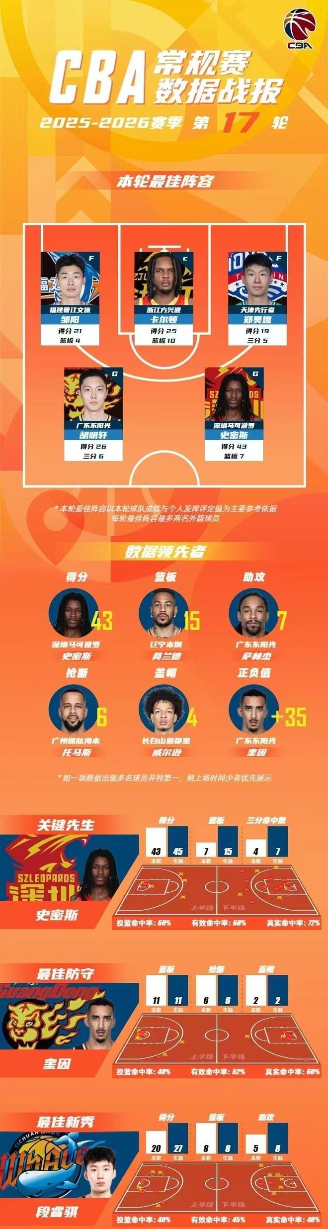 CBA第17轮最佳阵容: