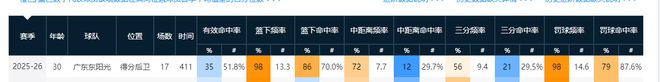 CBA25-26赛季,广东男篮的四名外援分别是麦考尔、奎因、萨姆纳、萨林杰。其中麦考尔一直在养伤,未能出场。所以本期内容,我们就来分析下另外三位外援的联赛表现。先来看萨姆纳身
