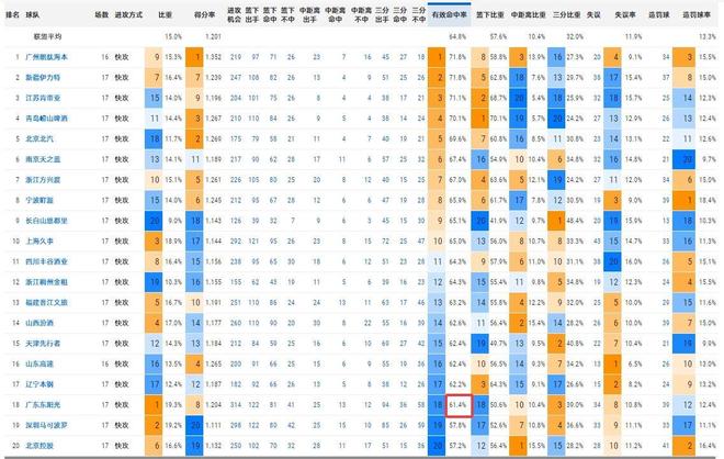 广东男篮最近的表现不错,先后大胜了四川男篮和吉林男篮,取得了一波两连胜。从表现来看,广东男篮目前的战术就是打快,奎因和萨姆纳的攻防转换和冲击篮下的能力都非常强,场均21.3分的快攻得分位居联盟第一。不过主打快攻也带来了一些问题,那就是广东男篮自身的失误也不少,另外就是快攻的命中率并不算高。