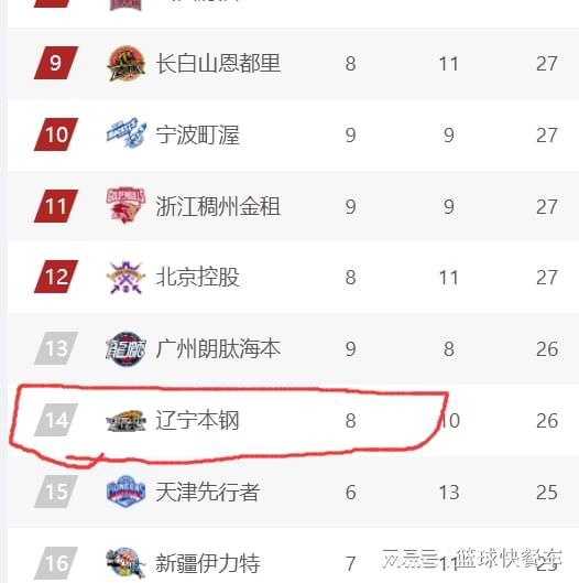 可仅仅过了一天后,辽宁队便被迅速踢出季后赛行列了。这一轮比赛,随着吉林队和北控队双双赢球,积分榜排名随即发生变化。吉林队直接上升到积分榜第9名,宁波第10,浙江第11,而北控队在击败北京队以后,他们也杀到了积分榜第12名。这样以来,辽宁队便被直接踢出季后赛行列了,他们目前以8胜10负,排在积分榜第14名,这也是辽宁队过去十年来,最差的开局。