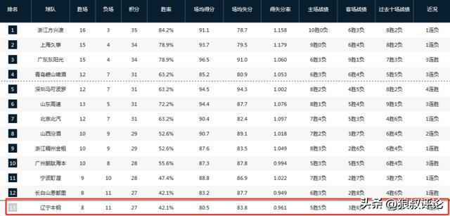 此役过后,辽宁男篮的战绩为8胜11负,跌出了积分榜前12区域,排在第13。