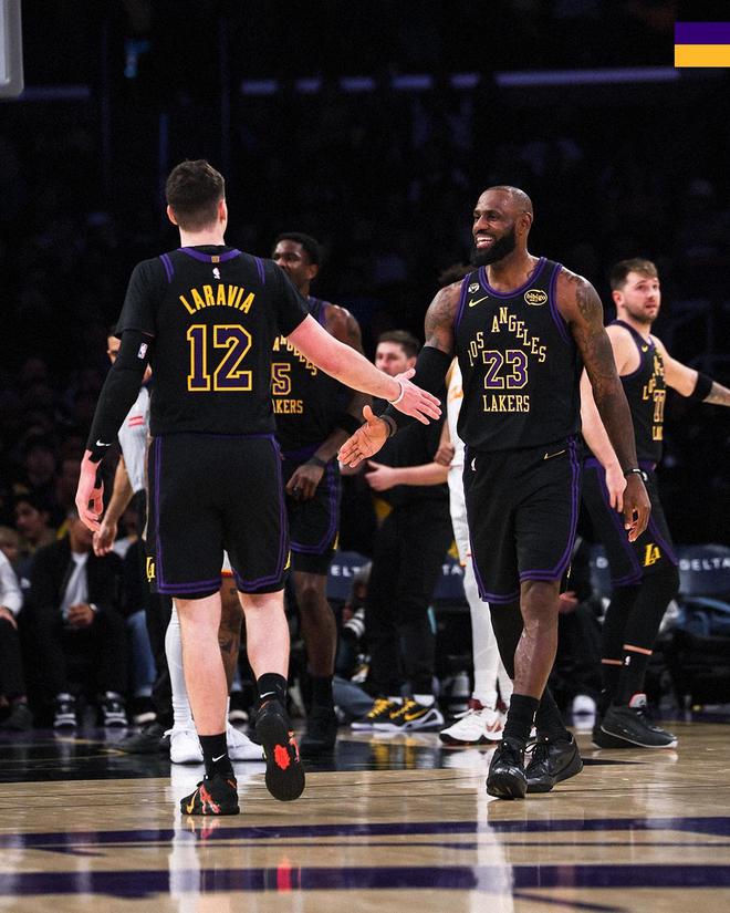 第一,本场比赛詹姆斯帮助湖人大胜老鹰25分,25分的分差刷新了湖人本赛季的最大赢球分差纪录。第二,本场比赛詹姆斯和东契奇各砍下25+得分、10+助攻和5+篮板的数据,这是他们组合第二次达成此成就,同时也是湖人队史第二对多次达成此数据的组合。第三,成为NBA历史上首位41岁后单场30分+10助攻球员 。赛后,湖人上下和媒体都盛赞了詹姆斯的表现。