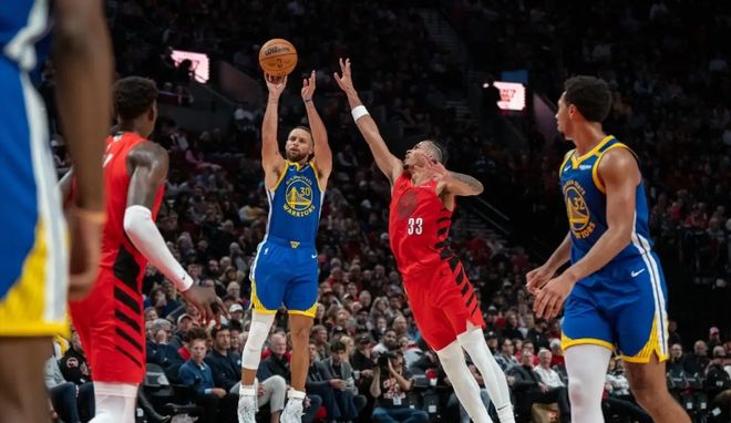 值得一提的是,勇士半场全队三分31投13中,命中率41.9%;作为对比,开拓者全队三分19投3中,命中率15.8%。