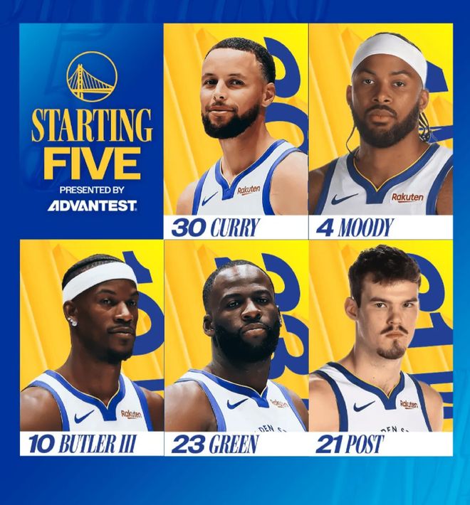 首发阵容方面,开拓者队这边,阿夫迪亚(下背部酸痛)、格兰特(跟腱炎)、亨德森(左腿筋撕裂)、霍勒迪(右小腿扭伤)、利拉德(左跟腱伤病)、塞布尔(右膝肌腱炎)、韦斯利(右脚骨折)和穆雷(腰部拉伤)等多达7人缺席,教练排出的最新首发五人组为:乐福、夏普、西索科、卡马拉、克林根;勇士队这边,首发阵容则为:库里、穆迪、巴特勒、格林、波斯特。