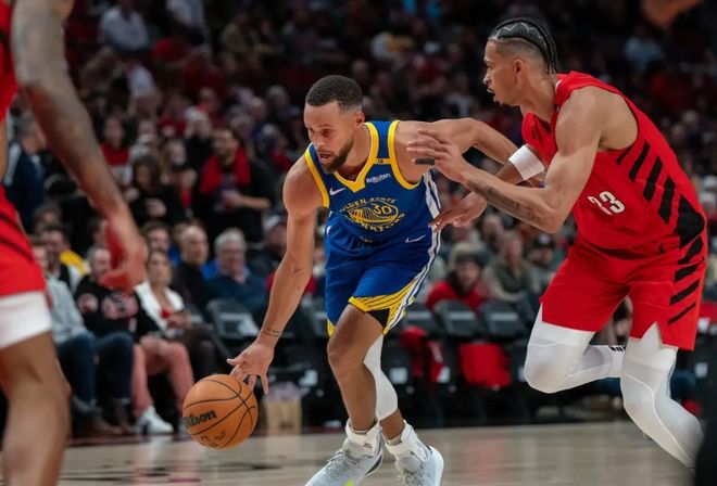 杨瀚森挣扎!勇士狂胜22分,拒绝开拓者四杀,库里迎4200三分纪录