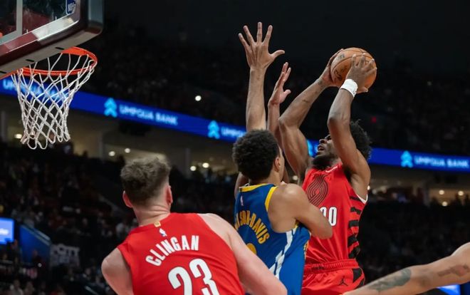 易边再战,西索科和卡马拉三分命中,开拓者开局连中3记三分,将分差缩小至16分,打停勇士。巴特勒三分线外接球手起刀落止血,霍勒迪突破漂移跳投命中,卡马拉后撤步三分跳投还有,开拓者打出19-5高潮追到12分分差。小佩顿反击暴扣得手,库里三分再投进,勇士一波7-0重新拉开分差。杨瀚森接乐福传球,底角三分轰进,波杰姆斯基压哨三分连中,三节打完,勇士95-71领先开拓者。