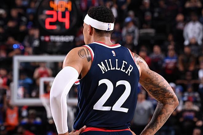 在上赛季的NBA常规赛中,米勒总共出场37次,场均出场时间达到了11.4分钟,场均数据为4.1分1.6篮板0.9助攻0.5抢断0.1盖帽,还有0.7次失误和0.7次犯规,投篮命中率43.3%,三分命中率21.1%,罚球命中率80%。到了季后赛,米勒总共出场3次,场均出场时间达到了4.3分钟,场均数据为2.3分0.7篮板1.3助攻1抢断,投篮命中率42.9%,三分命中率0%,罚球命中率50%。本赛季开季至今,米勒在前40场比赛中总共出场19次,场均出场时间达到了15.9分钟,场均数据为6.9分2.9篮板1.3助攻0.4抢断0.2盖帽,还有0.7次失误和0.7次犯规,投篮命中率50.6%,三分命中率41.7%,罚球命中率81.8%。