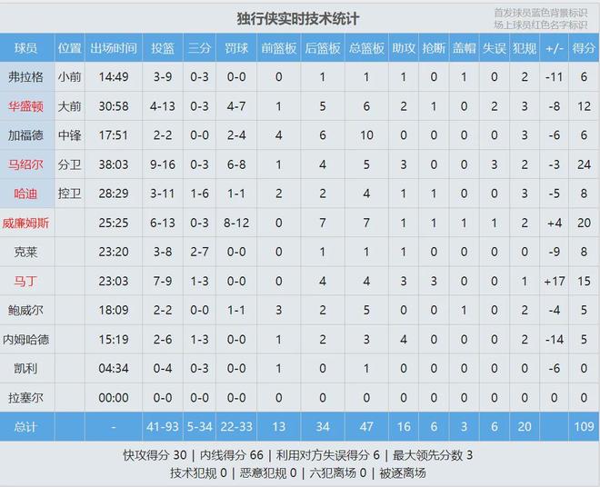 本场比赛,弗拉格出战14分49秒,投篮9中3,三分3中0,得到6分1篮板1助攻1盖帽;加福德出战17分51秒,投篮2中2,罚球4中2,得到6分10篮板3犯规。欧文和浓眉还没复出,如今弗拉格也倒下了,独行侠三状元已经全部休战。