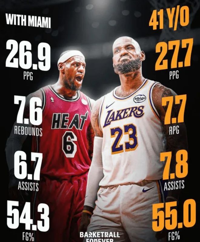 NBA新赛季开打以来,联盟中有不少老将都打出了让人意外的表现。就比如洛杉矶湖人队的詹姆斯,赛季初因为坐骨神经痛一度缺席了一个多月的比赛,复出后状态打得有点挣扎,曾连续两场比赛得分不到两位数,于是外界的嘲讽就紧随而来——“真的老了”、‘要退役了’... 然而,詹姆斯仅仅只用了不到一个月的时间,就用实际行动打脸了这些质疑者。自41岁生日夜后,詹姆斯场均可以轰下27.7分7.7篮板7.8助攻,命中率高达55.0%,这个数据甚至超过了巅峰时期‘热火詹’,确实让人敬佩。