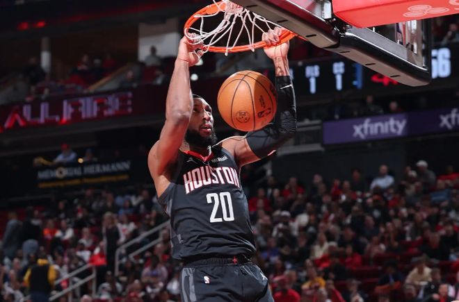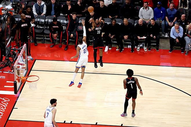 本场比赛中,虽然火箭遭遇了一场惨败,但是球队的先发得分后卫约什-奥科吉(Josh Okogie)也算是起到了一定的作用,只是作用也确实是不太明显的。奥科吉全场出场22分钟,投篮6中2,三分线外3中1,得到了5分5篮板1助攻2抢断1盖帽的数据,其中还包括了3个前场篮板,还有2次失误和1次犯规,正负值为-10。奥科吉在防守端的表现还是相当不错的,展现出了相当不错的个人防守能力,防守态度积极,并且起到了很好的效果。谢伊-吉尔杰斯-亚历山大(Shai Gilgeous-Alexander)在本场比赛中没有办法完全发挥出自己的得分能力,也和奥科吉在防守端的出色表现密切相关。当然了,奥科吉在进攻端的表现也是差了一些的,确实是没有起到更大的作用,他的得分能力与进攻贡献度确实是差了一些的。