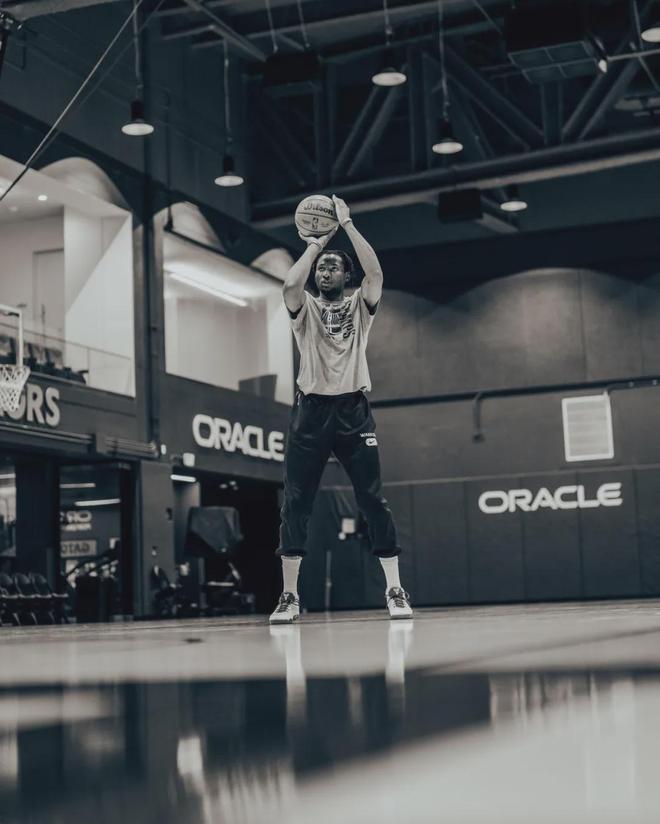 坐落在旧金山湾区特里-弗朗索瓦大道的勇士队的训练馆内,乔纳森-库明加刚刚结束了一组个人训练。汗水浸湿了他的训练服,过去一个多月,这身行头只在训练时能派上用场。自去年十二