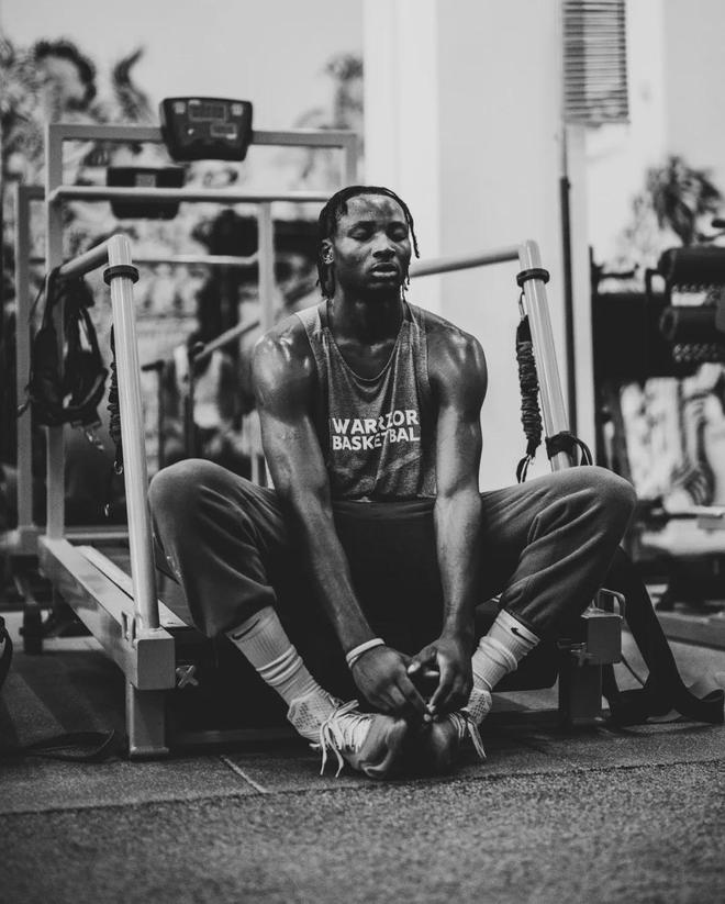 坐落在旧金山湾区特里-弗朗索瓦大道的勇士队的训练馆内,乔纳森-库明加刚刚结束了一组个人训练。