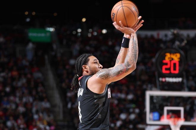 本场比赛中,火箭的替补控卫JD-戴维森(JD Davison)虽然手感平平,但是他在场上的作用其实还是具备一定的亮点的。戴维森全场出场20分31秒,投篮9中2,三分线外5中1,得到了5分1篮板1助攻1盖帽的数据,还有2次犯规,正负值为-2。戴维森在出场时间有限且球权不足的情况下还是展现出了不错的控运球能力,他也是具备一定的支配球能力的,而且他在防守端的表现也并不差。只是问题就在于,火箭完全没有想要把他当成控卫的想法。戴维森这样一名控卫,在场上经常不得不出现在底角位置,这显然是不符合他的特点和打法的。火箭还是坚持着混乱的进攻打法,即使进攻一塌糊涂,他们也没有考虑给戴维森机会去串联进攻。最终他们输掉了比赛,这好像也是一件合情合理的事情。