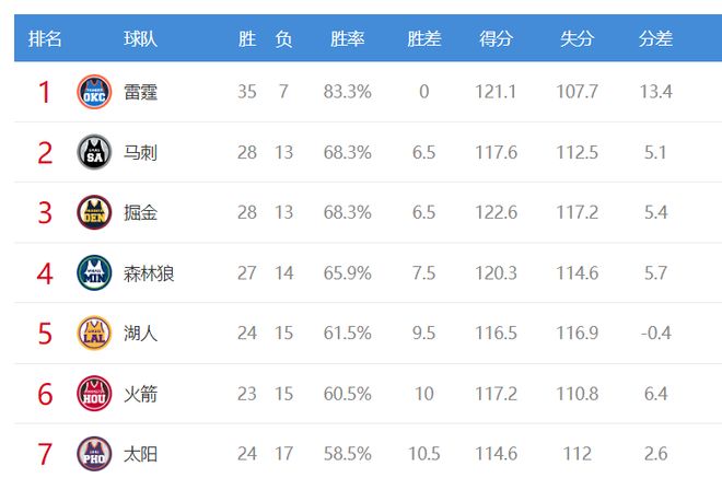 今天战胜火箭后雷霆又取得了5连胜,虽然之前马刺是连续战胜雷霆,但因为雷霆更加稳定,所以他们战绩依然还领先马刺6.5个胜场,第一的位置非常稳。
