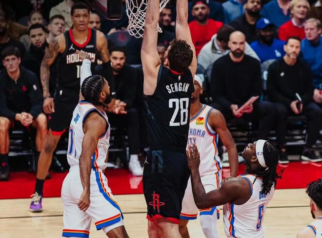 NBA常规赛,火箭坐镇主场迎击雷霆。本场比赛之前,火箭23胜14负排名西部第6,过去4场比赛他们输掉3场,被开拓者双杀,惨败倒数第一的国王,从阵容上看,火箭真的很强,全员天赋都是顶级,联盟