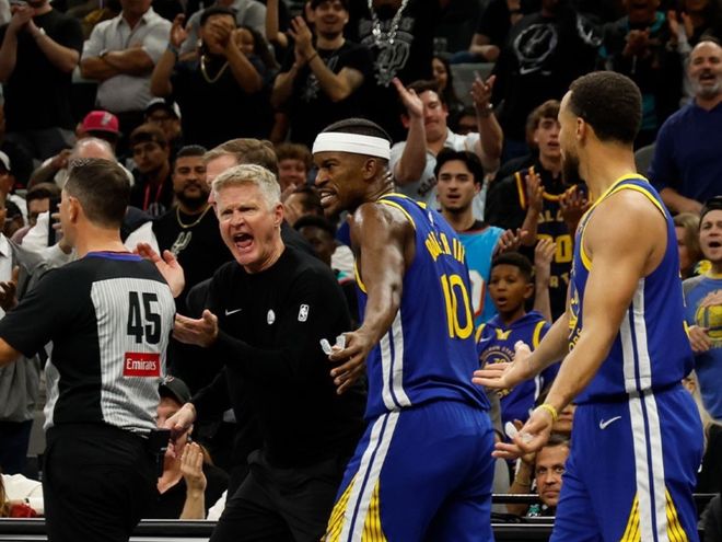 问题来了,库里球权占比高,勇士反而不好赢;库里不在场,球队防守反而更好。勇士本赛季的阵容,说白了是进攻无力,没稳定第三得分点,每场比赛就看谁能站出来。那应对这种起伏最好的方式,就是巴特勒这一边,但巴特勒年事已高,他要这么打下去,铁定坚持不到季后赛。而如果科尔继续延续库里的传切体系,且不说格林已经成了累赘,库里反而出力不讨好,事倍功半。库明加提出离队申请,勇士还“假装强硬”,表示没有合适筹码,宁愿不交易,打碎牙咽肚子里,损人不利己!对外标高价,对内则直接弃用。