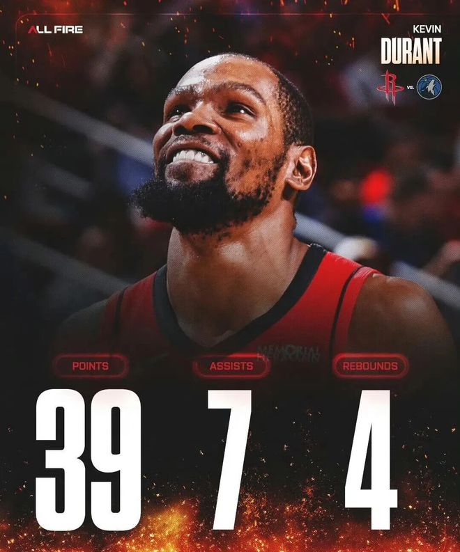 KD同样已经37岁,可在休斯顿照样逃脱不了被当驴使的命运。