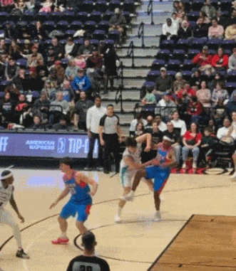 血帽18届首轮第16号秀扎伊尔-史密斯。低位单打,转身单手劈扣。四分卫长传,队友轻松上篮命中。杨瀚森首发出战约31分钟,投篮6中3没有三分出手,罚球4中4贡献14分17板2助2帽全面数