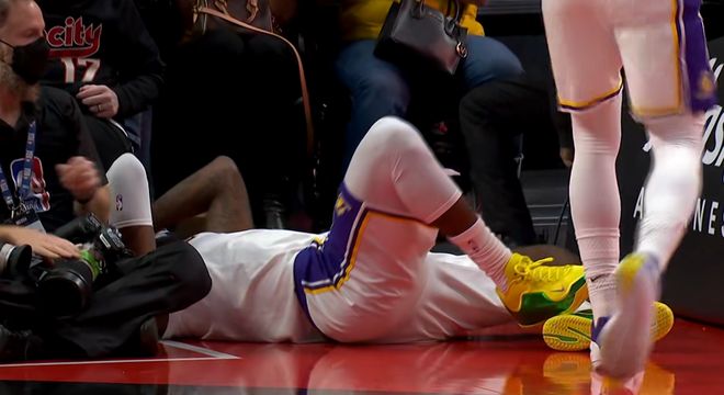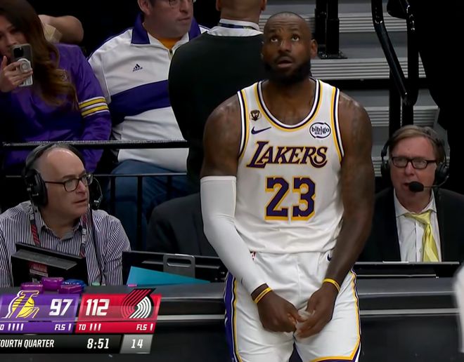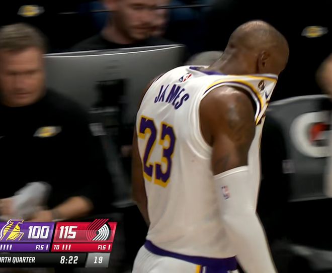 头狠狠磕到摄像机!詹皇受伤了,难怪输给开拓者,41岁老头太难了