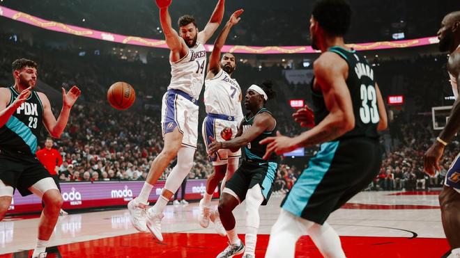 卡马拉封盖拉拉维亚,斯马特制造了吕佩尔的进攻犯规,詹姆斯罚球命中,随后助攻巴夫金外线打进。分差仅为11分,卡马拉、夏普相继远投发难,雷迪克请求暂停。巴夫金远投打铁,夏普与克莱伯在禁区斗法,乐福里突外投连得5分,波特兰取得22分领先。距离终场仅剩3分40秒,雷迪克再次请求暂停,湖人提前弃子认负。