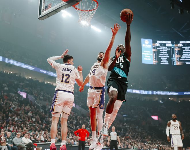 这一个比赛日,湖人奔赴撕裂之城波特兰,客场挑战开拓者,本场比赛单核带队的勒布朗詹姆斯得分效率不高,导致球队早早就陷入大比分落后的不利处境之中,眼睁睁看着开拓者以132-116在主场取得一场大捷。