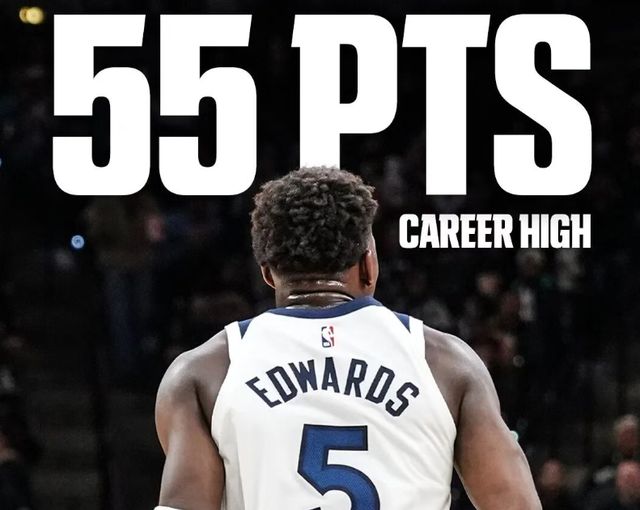 55分为个人生涯单场得分新高,同时也是自己生涯第3次单场50+;追平本赛季联盟第二高单场得分纪录,高居森林狼队史第四高分,仅次于唐斯一人。此外,单场9记三分也是他职业生涯的第二高。