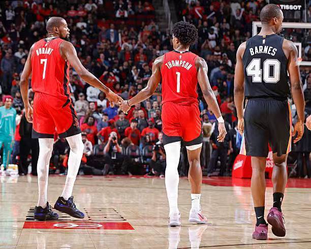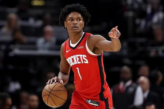 本场比赛中,火箭的先发控卫阿门-汤普森(Amen Thompson)的表现依然是令人喜忧参半。阿门全场出场39分13秒,投篮14中6,三分线外2中0,罚球5中4,得到了16分10篮板6助攻1抢断2盖帽的数据,还有3次失误,正负值为+7。阿门在进攻端虽然依然没有办法找到外线投篮方面的手感,但是他在中距离投篮方面的表现倒是有些出人意料的,他在这方面确实是是起到了一定的作用。不仅如此,阿门在防守端的表现也是可圈可点的,给对手的后场新星斯蒂芬-卡斯尔(Stephen Castle)制造了不小的威胁。当然了,作为一名控卫,阿门在传球和组织方面的表现还是比较一般的,他也需要进一步优化一下自己的进攻选择以提升自己的进攻效率和成功率。
