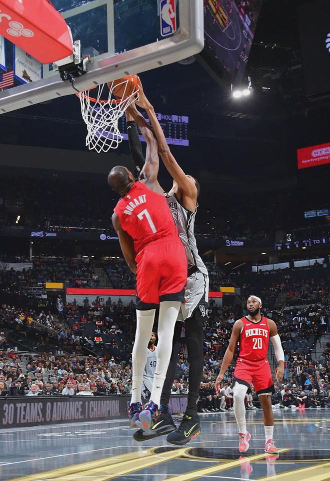 这个防守并不是火箭首创,包括森林狼在内的多支球队,现在都是这样顶防文班。火箭球星杜兰特赛后点评文班:“他还在打磨跳投技术,他一开始投进了几个。但大部分时间,我们都让文班顶着防守球员、进行高难度的后仰跳投。”
