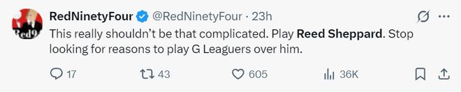 休媒:其实选择很简单,既然火箭用探花签选了谢泼德,就不要用那些G联赛的后卫,就让谢泼德打就好了。