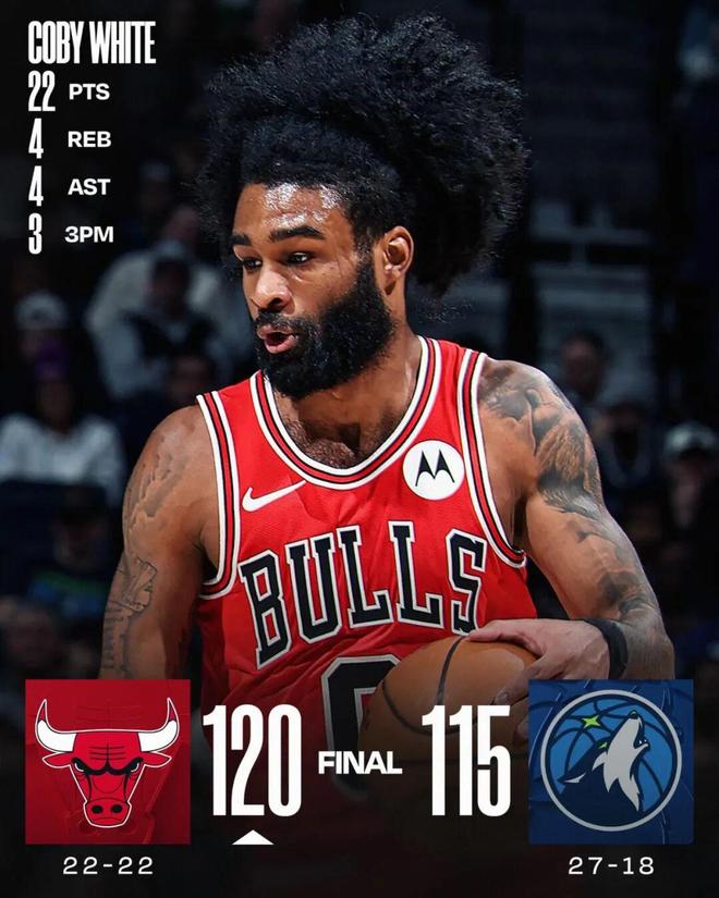 常规赛,公牛客场120-115战胜森林狼。