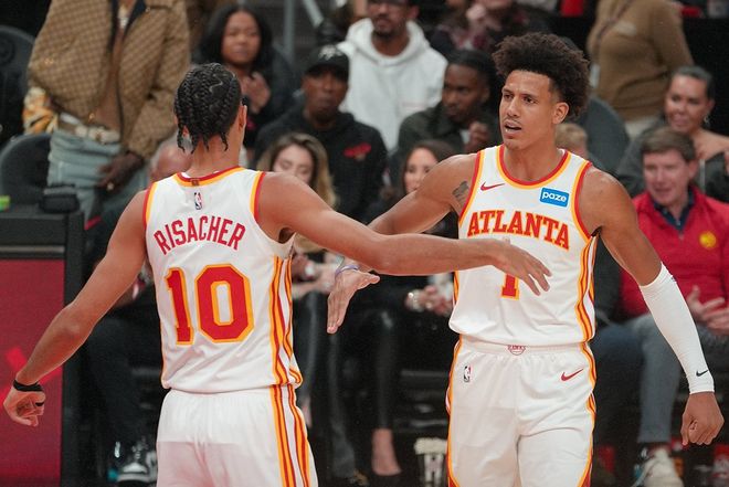 两队此前在2025年11月已经有过一次交手,老鹰124-122取胜,杰伦·约翰逊25分10个篮板,奥孔古27分,沃克26分,狄龙34分,布克27分。