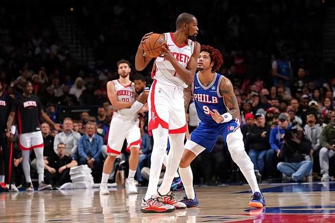 本场比赛中,火箭的先发锋线球星凯文-杜兰特(Kevin Durant)的出场时间又一次居高不下。杜兰特全场出场44分02秒,投篮21中13,三分线外8中5,罚球6中5,得到了全场最高分36分外加7篮板3助攻1盖帽的数据,还有8次失误和2次犯规,正负值则是低到了-15。杜兰特在进攻端的个人表现相当不错,确实是展现出了自己超强的得分能力,而且他的手感相当不错,也是不断通过外线投篮制造威胁。杜兰特也是又一次狂砍高分,发挥出了自己的价值。然而问题就在于,杜兰特的情况其实和之前很多场火箭输球的比赛都非常相似,他在防守端的表现非常一般,除了能够自己得分以外,他也没有办法在其他方面为球队提供更大的帮助和支持,他还出现了大量的失误。杜兰特并不能靠着一己之力帮助球队扭转局面,这就是本场比赛中我们能够直观感受到的最大问题。