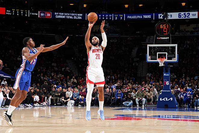 本场比赛中,火箭的先发得分后卫约什-奥科吉(Josh Okogie)的表现算得上是相当不错。奥科吉全场出场34分49秒,投篮5中3,三分线外2中1,得到了7分3篮板2抢断的数据,还有1次失误和2次犯规,正负值为+1。奥科吉在防守端继续着自己的强势表现,他的进攻效率也是能够保持在一个不错的水平,他的整体作用也是超出大家预期的。在出手次数不多的情况下,他也是得到了一些分数。奥科吉在防守端的表现算得上是非常突出,展现出了超强的个人防守能力。活塞的后场核心凯德-坎宁安(Cade Cunningham)在本场比赛中完全没有发挥出自己的特点,这也和奥科吉超强的防守能力密切相关。虽然数据看起来不算出色,但是奥科吉绝对是为球队的胜利做出了巨大的贡献。