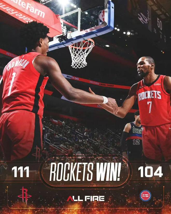 - 火箭111-104战胜活塞,杜兰特绝对是当之无愧的主角。背靠背还出战40分钟,投篮19投11中,其中三分球11投5中,罚球6...发表于: 01-25 08:55