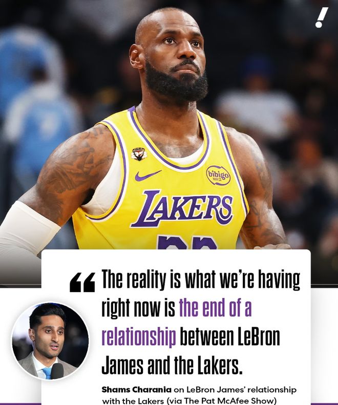 而据名记Shams最新报道,詹姆斯与经纪人里奇保罗正准备与湖人管理层会面,以消除其中的误会。而据Shams透露,无论会谈结果如何,詹姆斯的湖人生涯或许已经临近终点。