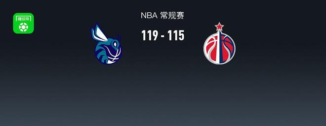 第四节黄蜂拉梅洛-鲍尔拿下7分,奇才亚历克斯-萨尔拿下9分,最终黄蜂119-115战胜奇才