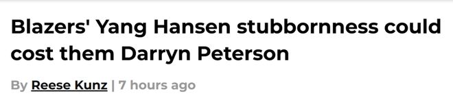 北京时间1月25日,波特兰记者Reese Kunz撰文表示,开拓者对杨瀚森的执念,或许让他们错失了得到达林-彼得森(2026年状元热门)的机会。以下是他的文章——